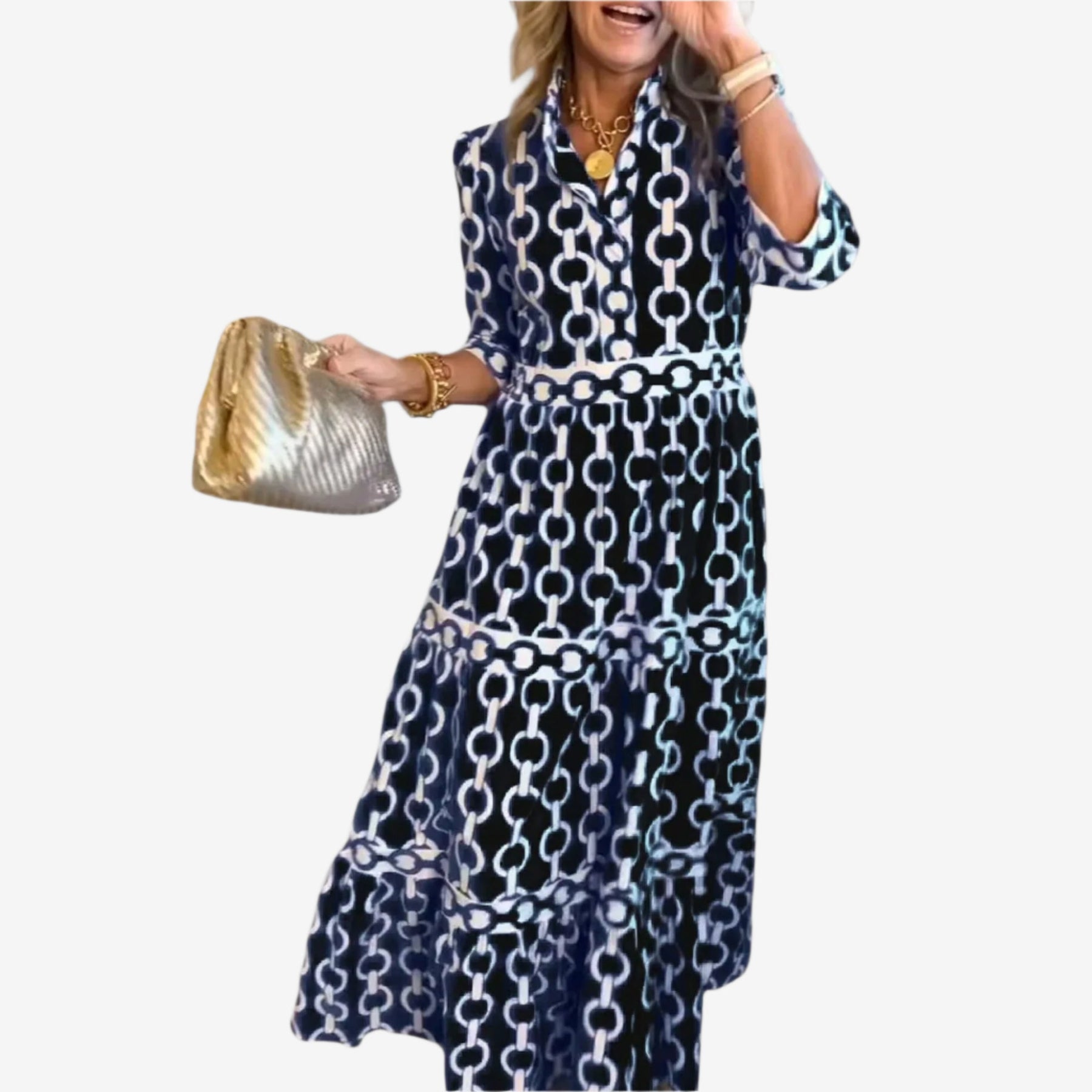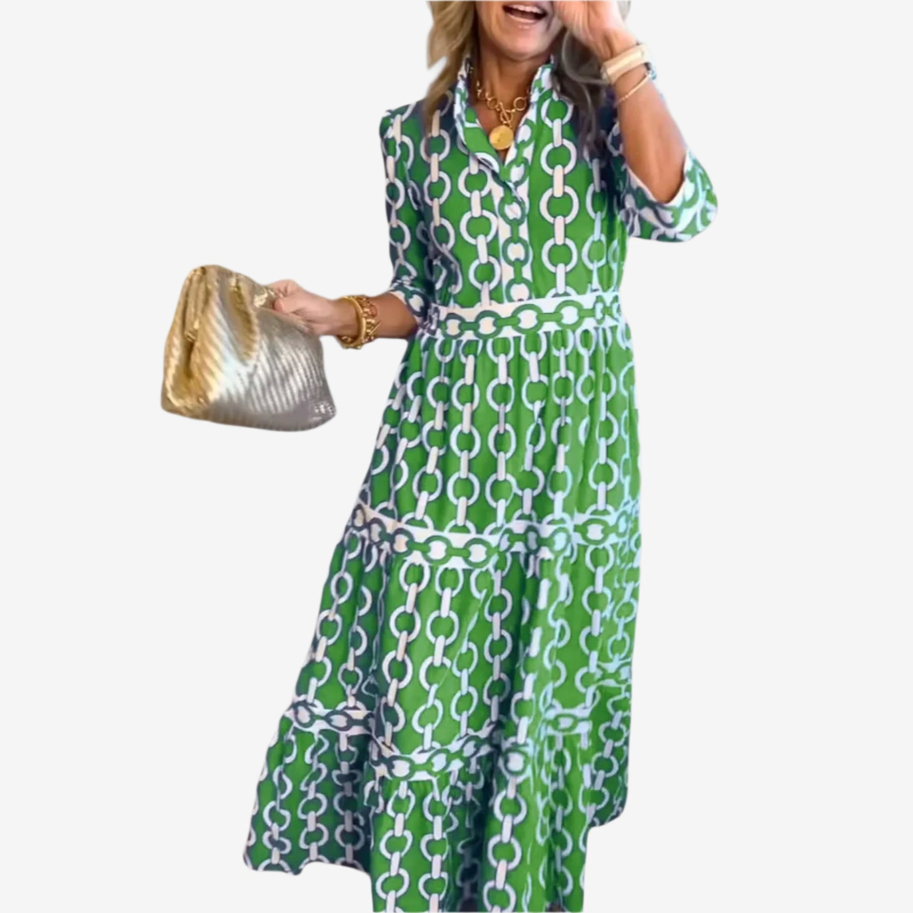 Adoptez un style affirmé avec Solara™, la robe midi accrocheuse qui attire tous les regards grâce à son imprimé géométrique audacieux et à son élégance bohème naturelle. Sa coupe décontractée, sa fermeture boutonnée sur le devant et sa jupe à volants créent une silhouette flatteuse qui s'adapte à chaque pas, parfaite pour les brunchs, les événements estivaux ou tout simplement pour se sentir fabuleuse par une journée ensoleillée. Confectionnée dans un tissu léger et respirant, Solara™ allie couleur et confort en toute simplicité, offrant un style affirmé aux femmes qui aiment les robes polyvalentes.